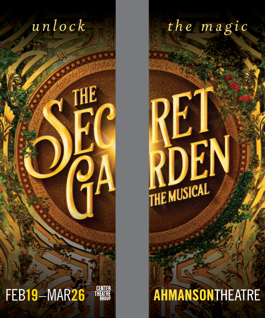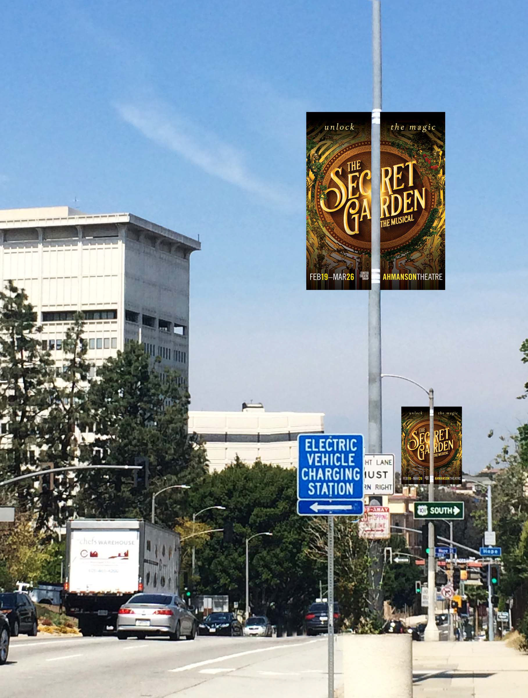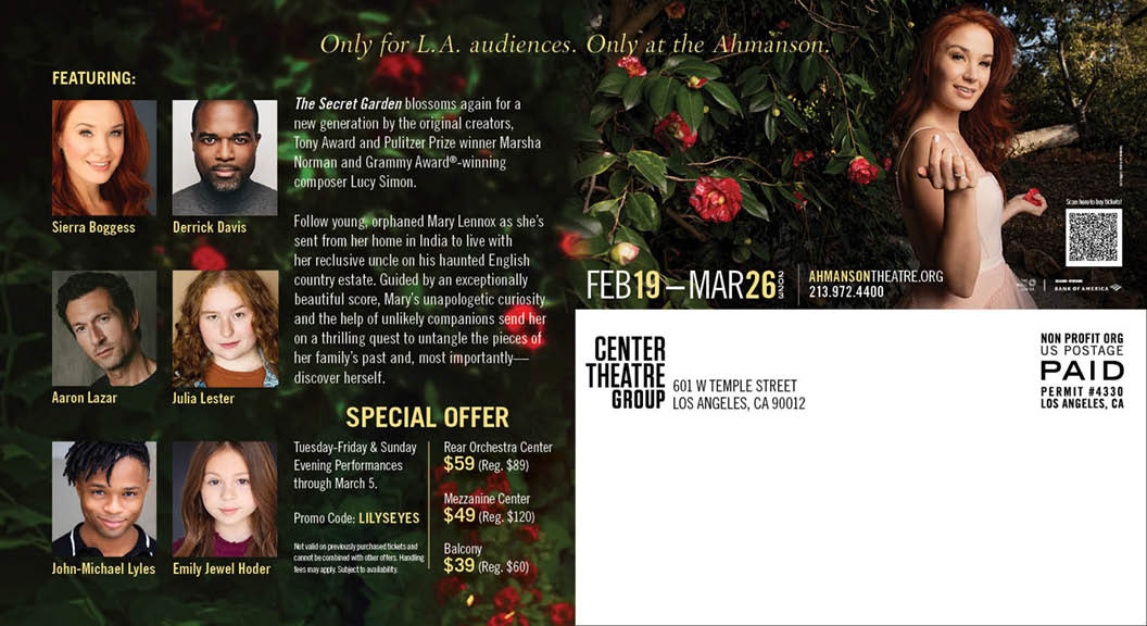 Street pole banner and mailer for "The Secret Garden" at the the Ahmanson Theatre in DTLA.