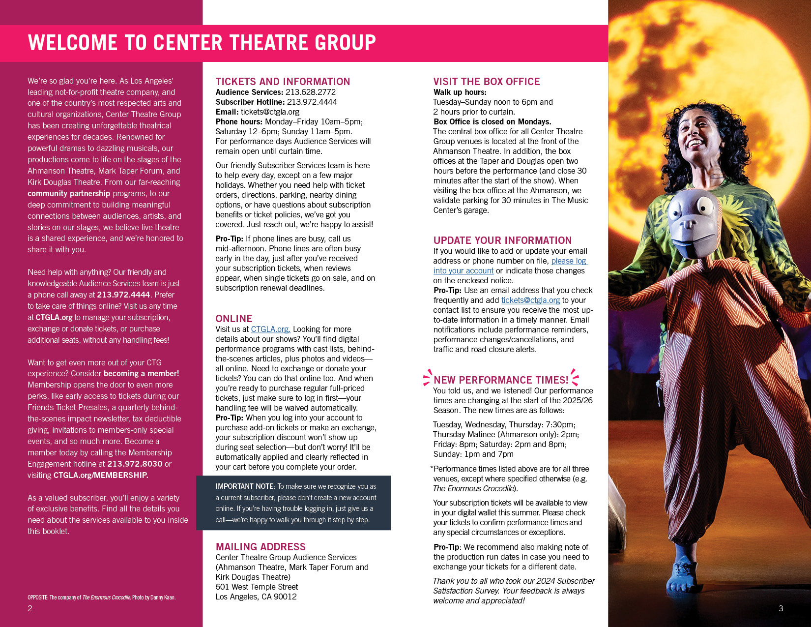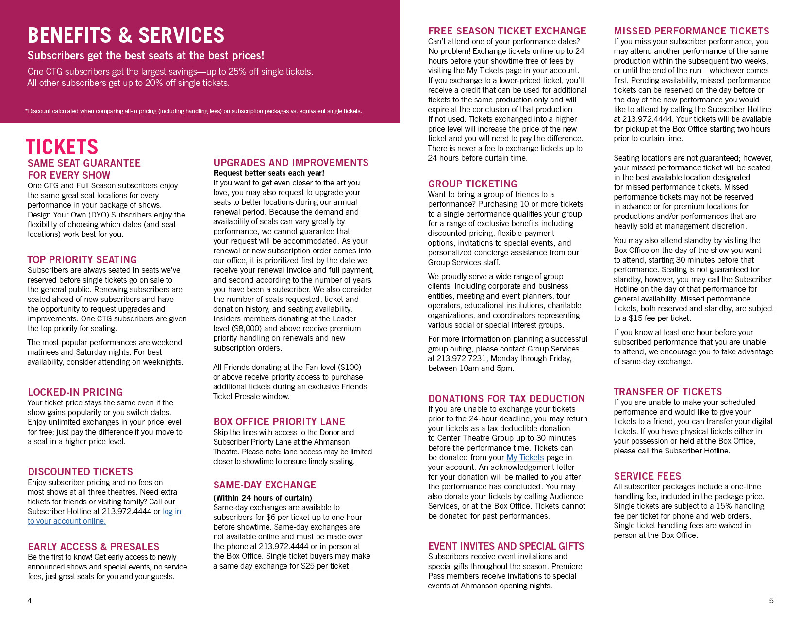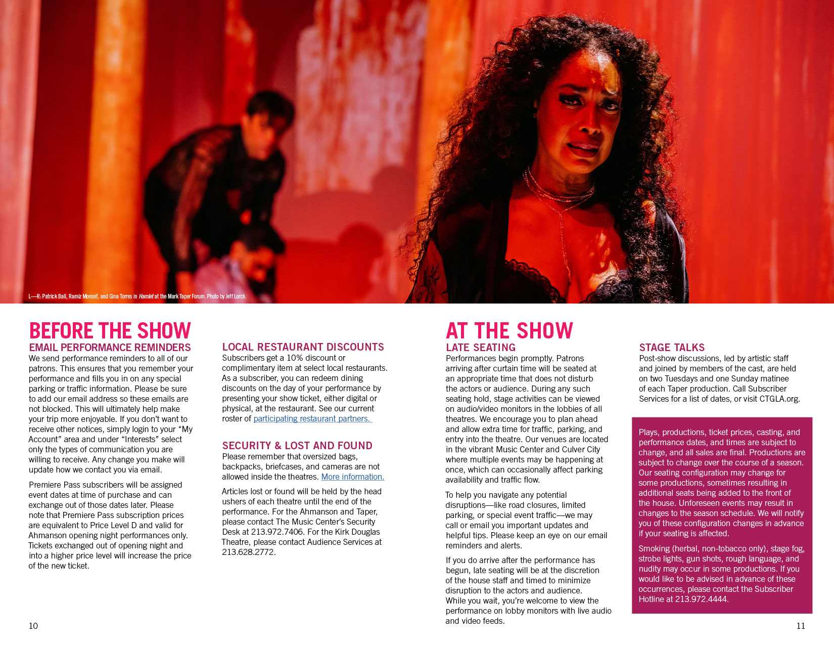 Handbook for subscribers to Center Theatre Group.