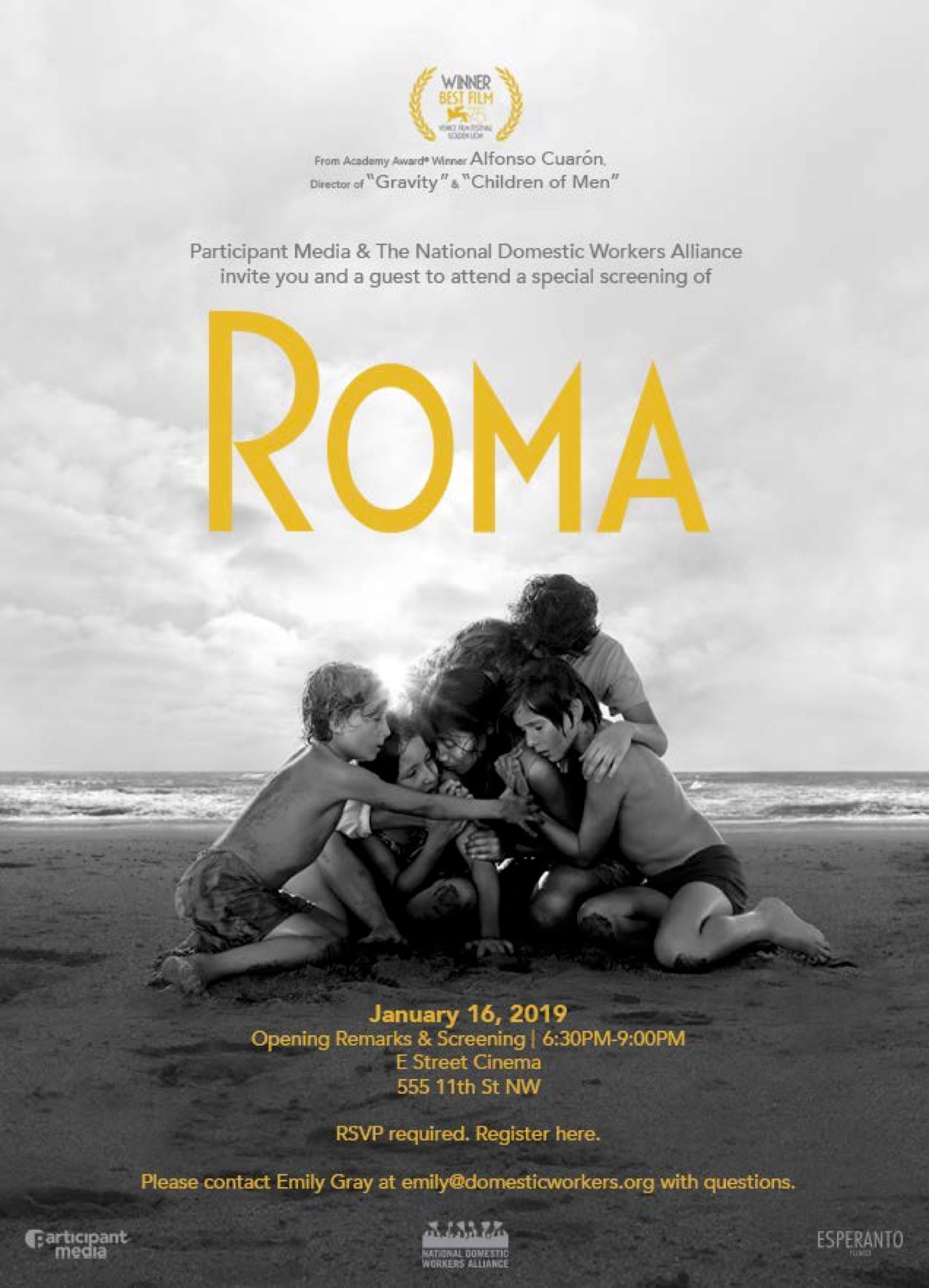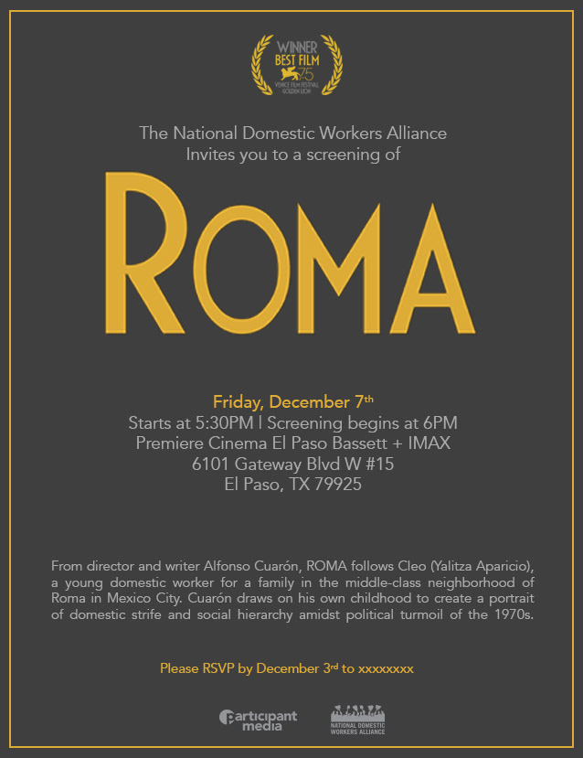 Info sheet and invitation for a screening of "Roma"