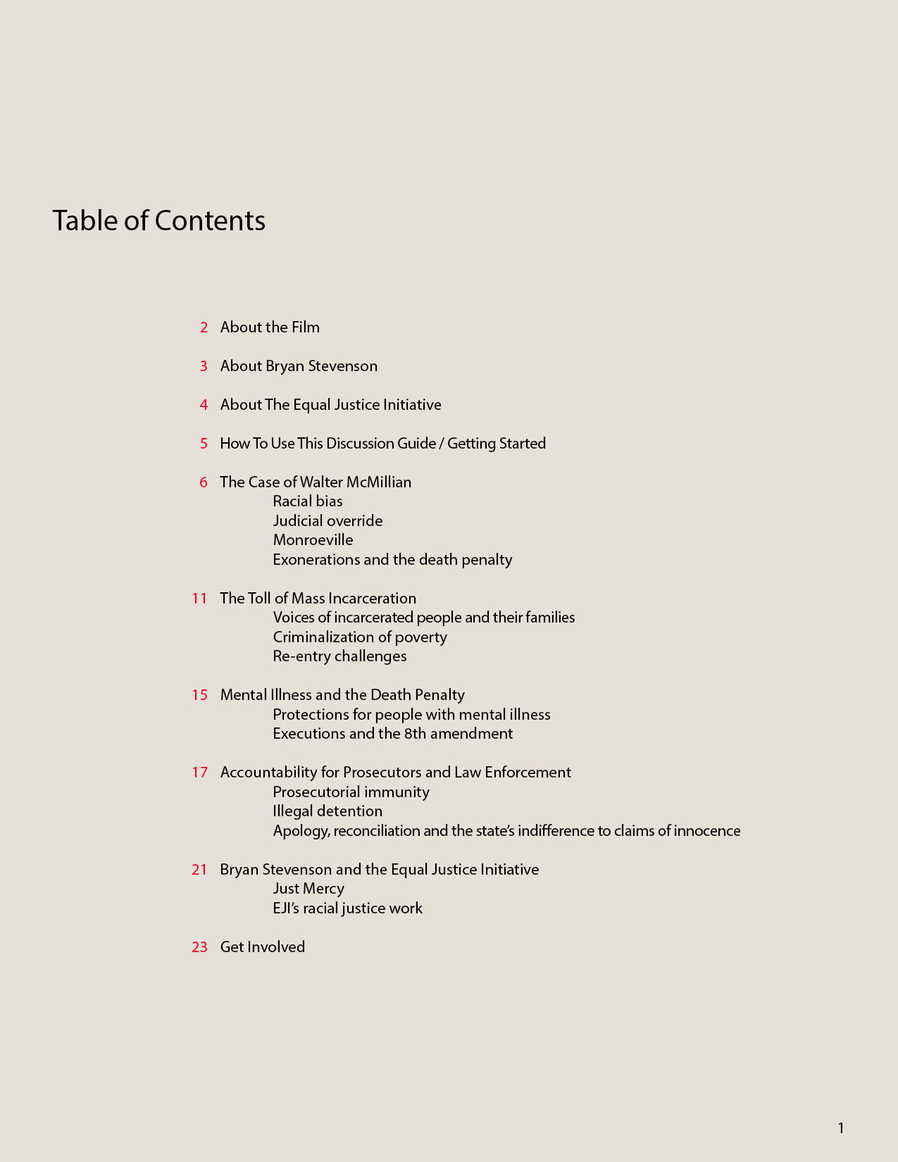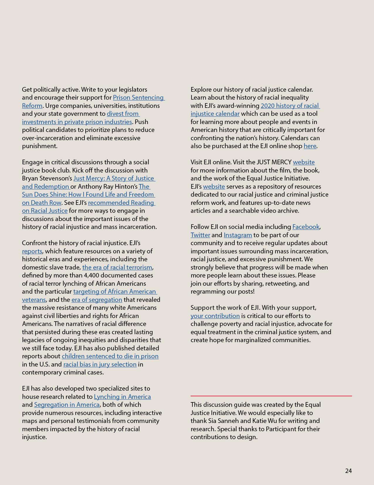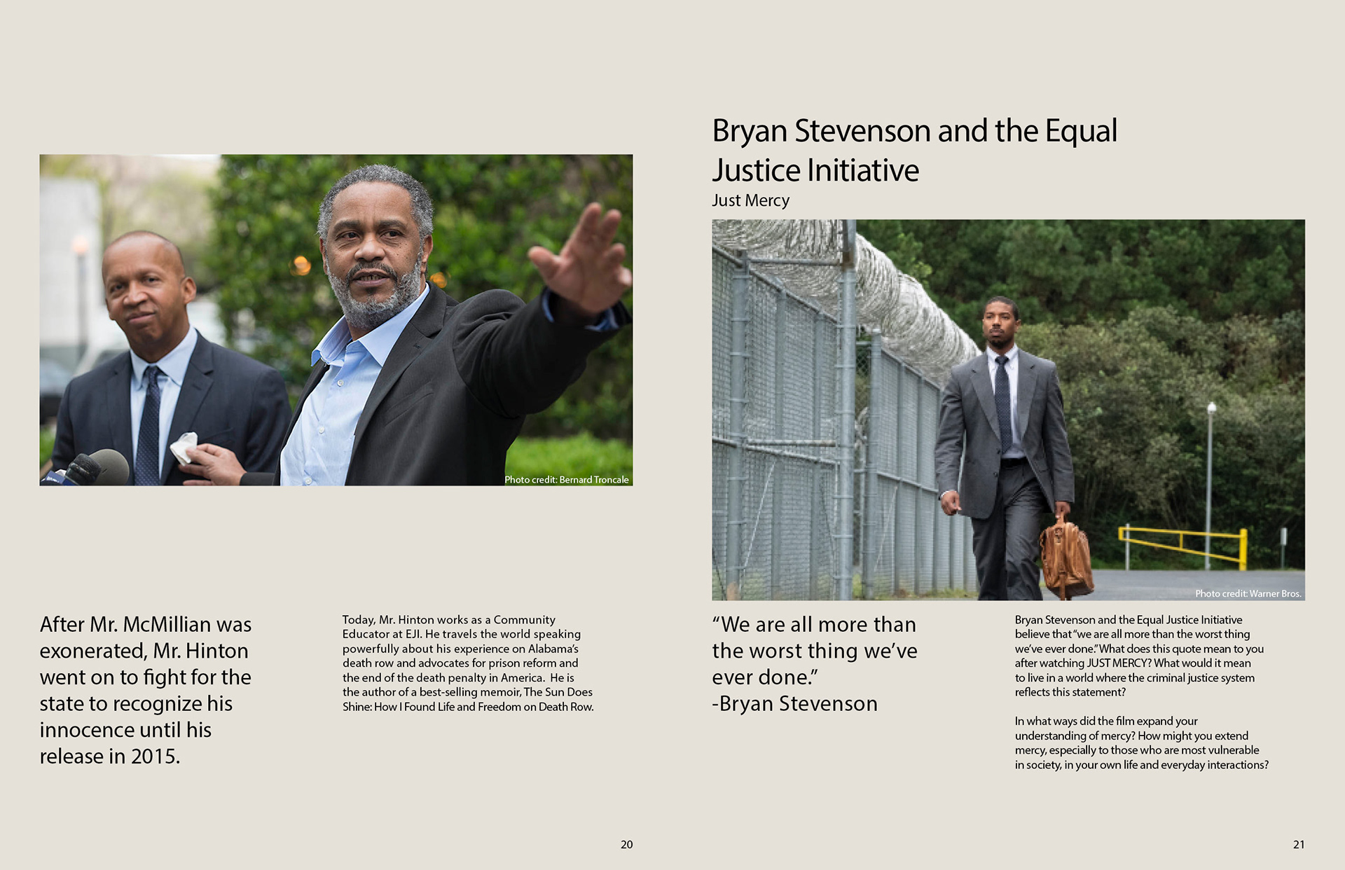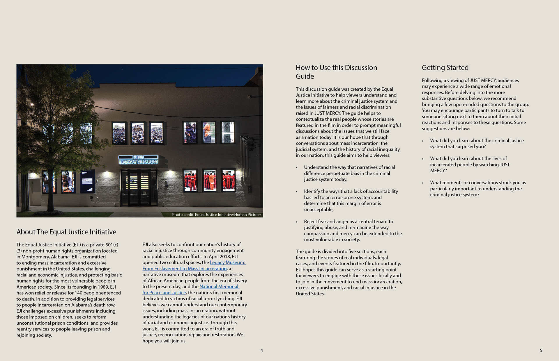 "Just Mercy" discussion guide for the Equal Justice Initiative.
